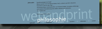die primären stilmittel, farbe und typografie, sind kreativer und temperamentvoller selbstausdruck der hier vertretenen disziplin, der konzeption sowie vorstufe von druck- und webmedien.
